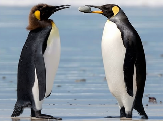Pinguins pedem suas parceiras em casamento oferecendo uma pedra